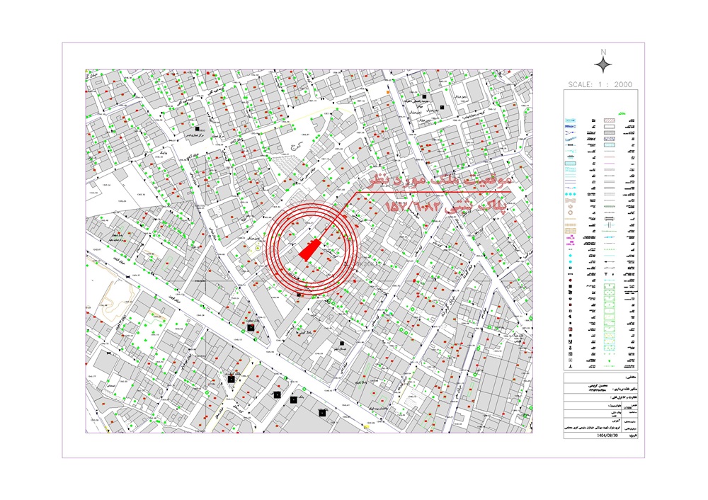 مهر و امضای کارشناس رسمی دادگستری شهرداریها نقشههای بدون مهر را قبول نمیکنند. نقشه نهایی باید ممهور به مهر کارشناس رسمی دادگستری (رشته امور ثبتی یا نقشهبرداری) باشد. این مهر به معنای پذیرش مسئولیت حقوقی صحت نقشه است.