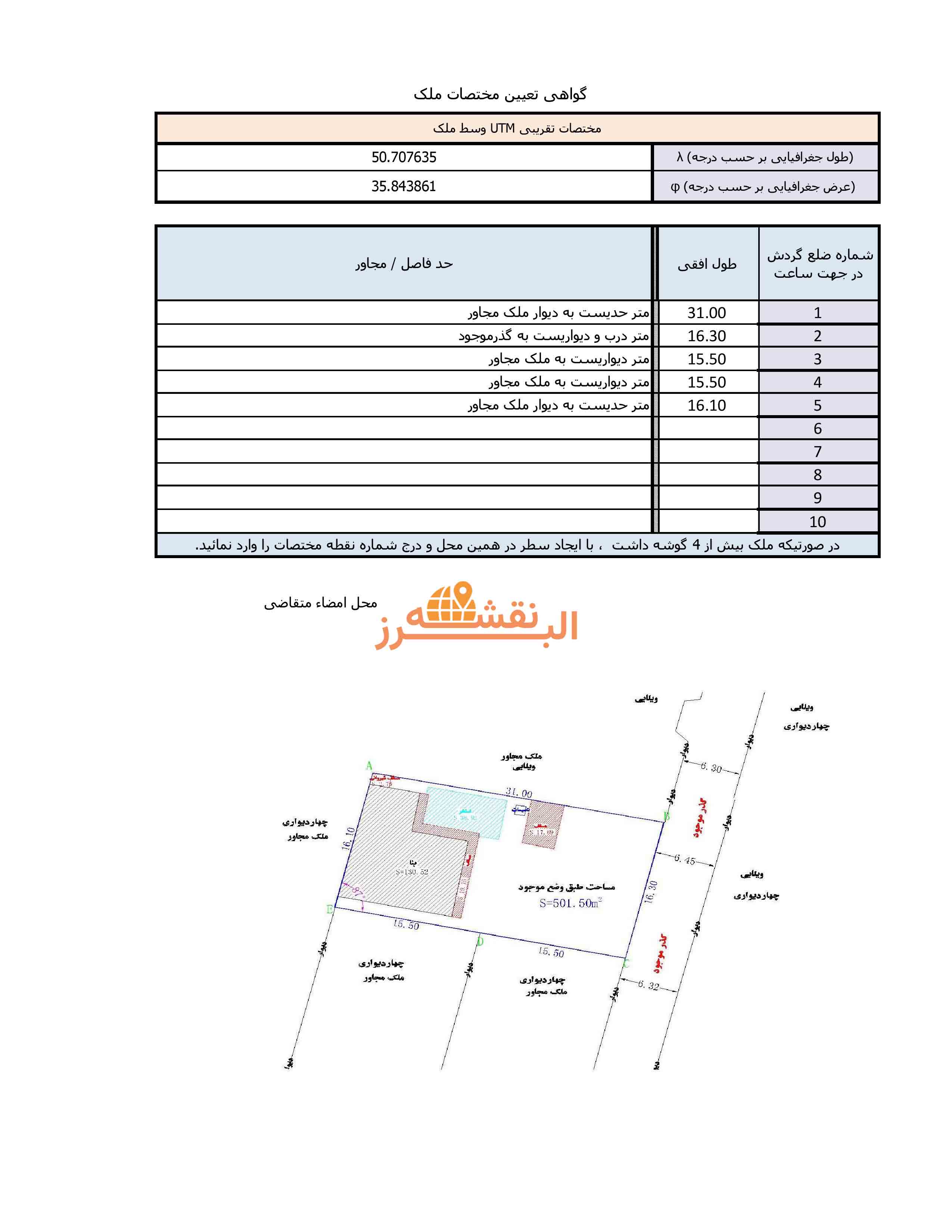 - ترسیم نقشه و گواهی مختصات: تهیه نقشه استاندارد UTM و فایل الکترونیکی جهت بارگذاری در سامانه .