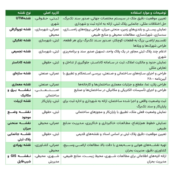 جدول: انواع نقشههای رایج در ساوجبلاغ و کاربردهای آنها