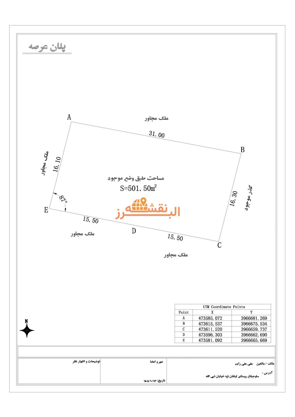 نقشه UTM تهیه شده توسط کارشناس رسمی با مهر و امضا