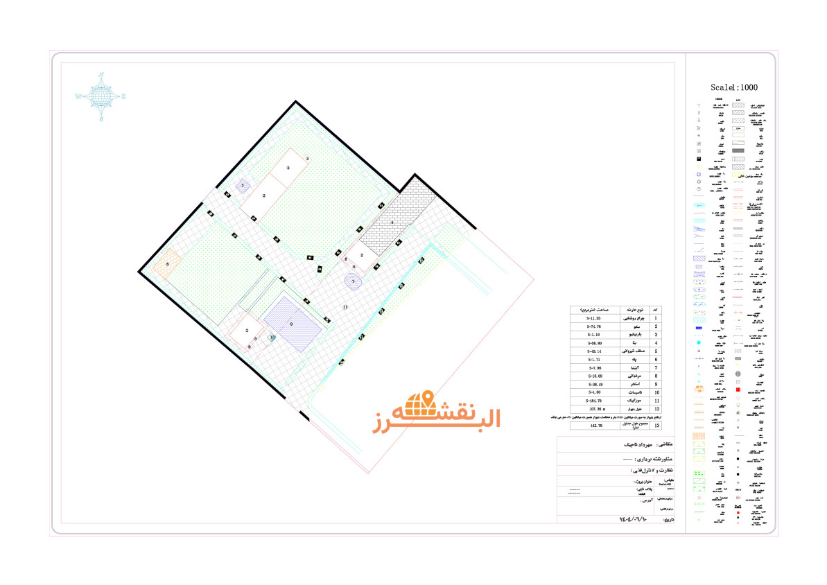 نقشه جانمایی پلاک ثبتی: این نقشه موقعیت دقیق پلاک ثبتی را بر اساس اسناد و نقشههای قدیمی تعیین میکند و برای حل اختلافات ملکی و صدور سند تکبرگ ضروری است.